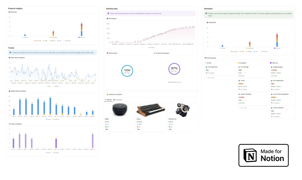 This Notion template is the result of nearly two years of daily use, testing, and gradual improvement. It was designed to solve real problems: keeping focus while managing multiple projects, reducing decision fatigue, and staying motivated over time.